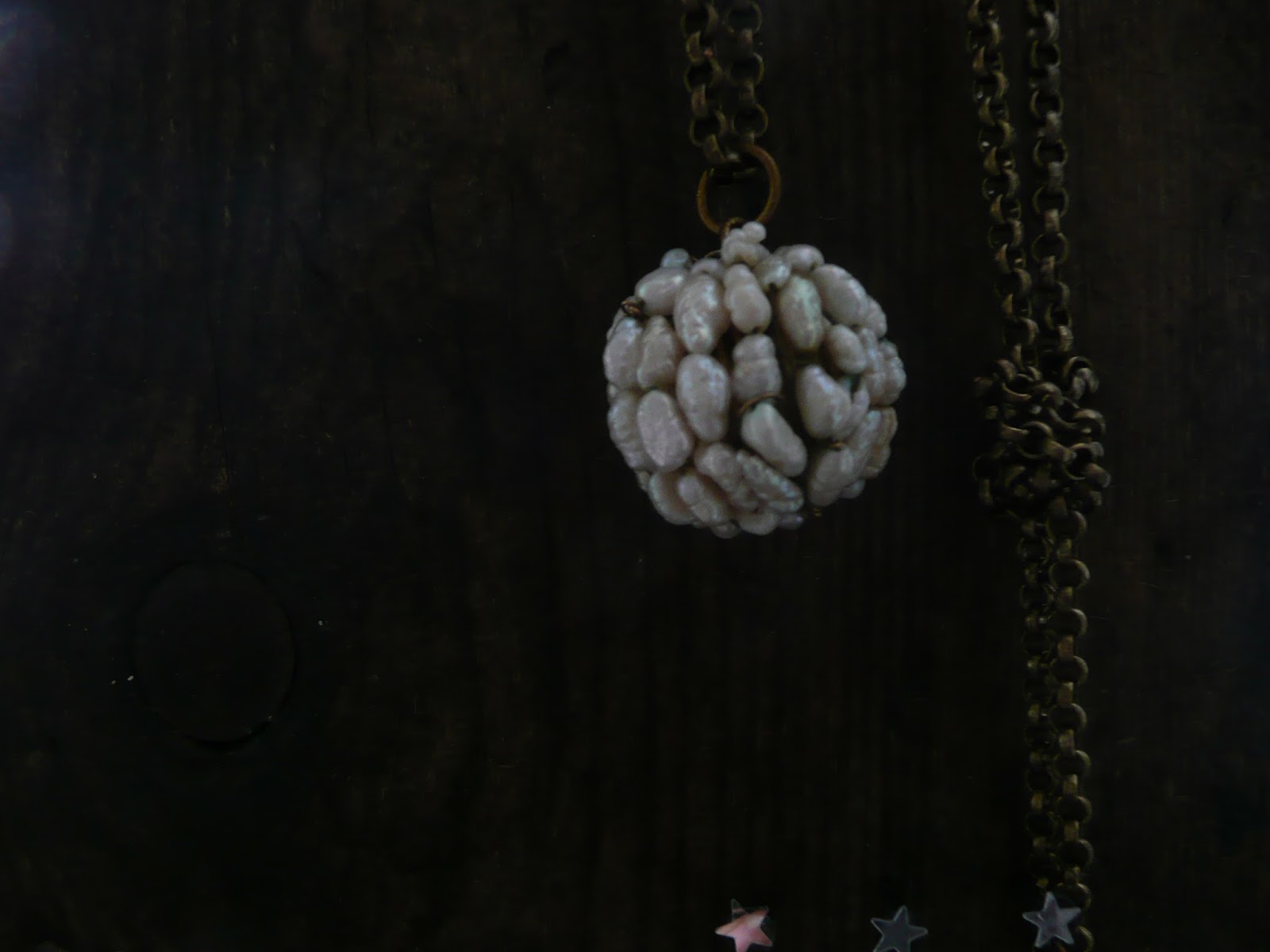 So when it came to jewellery I was intrigued to find that whilst mother commissioned me to make her a string of pearl globe beads separated by white organza ribbon, her daughter opted for the same pearly goodness in the form of a simple, more casual pendant-a single pearl globe suspended on a long brass chain. The pieces have a very different feel to them-one haute couture, the other high fashion, even though they have the same roots.
